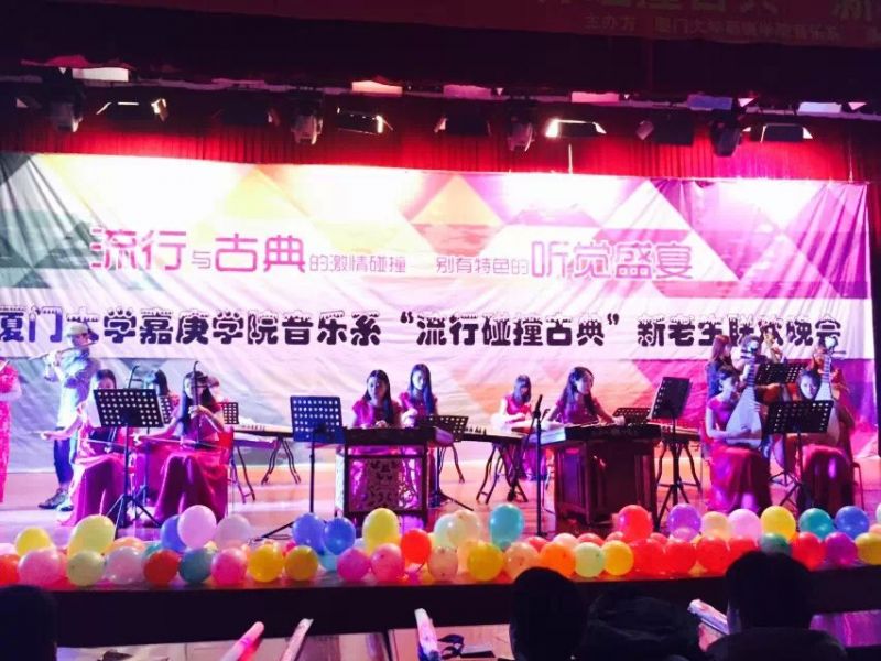 作者: 来源:音乐系 2014-12-142014年12月13日(星期六)晚 19:00厦门大学嘉庚学院音乐系的同学们在主3大报告厅举行了“流行碰撞古典”的新老师迎新晚会。经过两个多月的筹备,晚会取得了圆满的成功。为了完美的呈现这次演出,音樂系的小伙伴可谓下足了苦功夫啊。本次晚会不仅有美声与通俗唱法的合唱,西洋乐器与中国民乐的碰撞,民族舞与街舞的摩擦,还有一些列乐器的展示、似梦似真的魔术表演和充满激情的b-box。