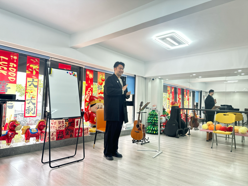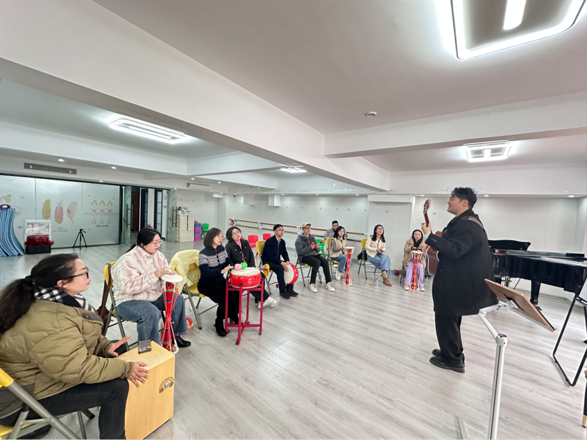 活动分两场推进:首场以吉他旋律引导全身心放松,让教师在“被疗愈”中体悟教学设计的感官逻辑;次场转入即兴互动,众人从聆听者变成共创者,在节奏改变中解锁“双向参与”的课程内核。