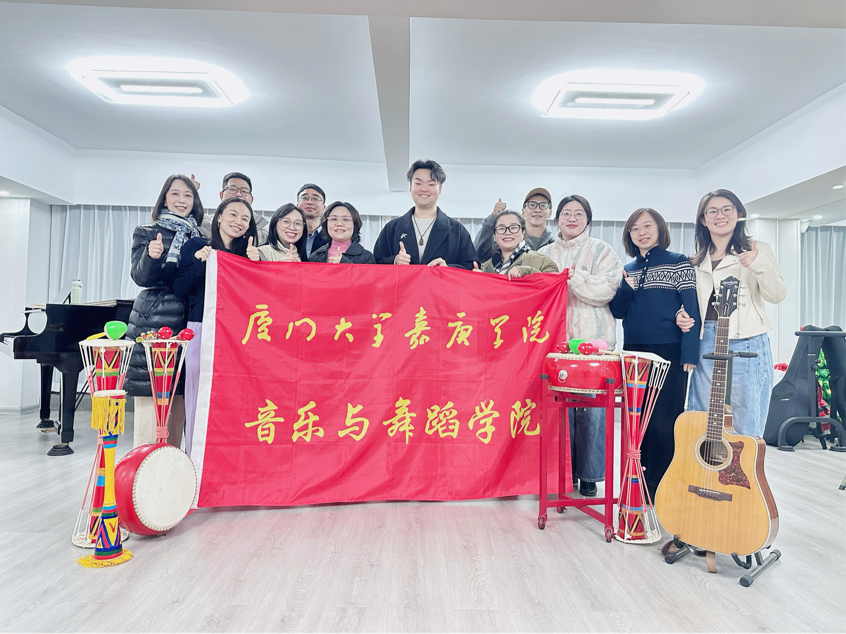 1月22日上午,在厦门大学嘉庚学院音乐与舞蹈学院执行院长廖瑞洁副教授的带领下,一行18位教师奔赴厦门市伊赞艺术中心,开启一场教研与疗愈交织的深度之约。美国注册音乐治疗师、伯克利音乐学院音乐治疗专业谢望陵老师,以六弦琴音为引,带领众人步入音乐疗愈的秘境。尤为温暖的是,我院多位从事相关领域的校友也专程前来,与恩师、同窗共聚一堂,在旋律中重温校园时光,于互动里见证母院发展。