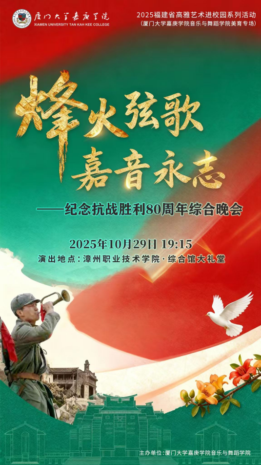 音乐会 2022级舞蹈表演专业毕业晚会 2025福建省高雅艺术进校园系列活动 热烈庆祝厦门大学嘉庚学院音乐与舞蹈学院成立 厦门大学嘉庚学院音乐系美育建设成果展示--纪念中国人民抗日战争胜利暨世界反法西斯战争80周年管弦合唱音乐会 名家名师进校园系列--黄小露 视频影音 更多 新闻报道 更多 “嘉”讯!音乐与舞蹈学院揭牌成立 音乐系钢琴教研室实践周:在多元体验中读懂音乐的“立... 校社联动!音乐系学子赴厦门市湖里区开展艺术实践活动 中共漳州市芗城区委宣传部赴厦门大学嘉庚学院开展林语... 黄小露教授做客音乐系——解码新课标下艺术实践转型与就... 音乐系师生深度参与海峡两岸音乐交流季活动 四川师范大学专家讲座——《藏族热巴舞的文化场域生成与... 厦门大学嘉庚学院音乐系首届器乐技能大赛决赛暨“第二... 听!“嘉二代”奏响“嘉”年华 回到“最初的美好” 科技特派员引领高校美育资源下沉 音乐系奏响乡村振兴... 通知公告 更多 厦门大学嘉庚学院音乐系毕业论文(设计)指导手册 202... 2025届毕业论文(设计)查重检测工作方案 音乐系毕业论文(设计)工作领导小组成员名单(2025年... 厦门大学嘉庚学院音乐系毕业论文(设计)指导手册 音乐系毕业论文(设计)格式参考文档 音乐系毕业论文(设计)工作领导小组成员名单 2024--2025学年第一学期教材选用计划表 厦门大学嘉庚学院音乐系首届五项全能大赛 厦门大学嘉庚学院音乐系舞蹈教研室“舞艺嘉庚杯”首届... 厦门大学嘉庚学院音乐系2024届毕业论文(设计)查重检... 风采之窗 更多 音乐与舞蹈学院 执行院长 廖瑞洁 厦门大学嘉庚学院18级舞蹈表演结业晚会 2018级民乐合奏汇报音乐会 赵纯 洪再添 胡乃君 相关链接 教务部 学校主页 厦门大学 厦门大学艺术学院 音乐系新浪微博